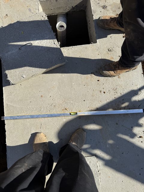We check the integrity of all lids to make sure they are not sagging, cracked, or broken. Tank walls, front, and rear baffle tees are checked for cracks and deterioration as well.